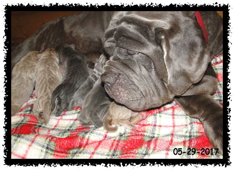 Pretty busy week here at Clayton Hill … Our Tubby had babies on Monday! Strong, healthy tawny and blue pups … and Mom! All are doing great! Miss Tubitha likes her some food, she does! Which is a blessing – as she likes my cooking (calories), along with kibble and puppy food! Just look at all that squishy-faced LOVE … OMG’osh!!!