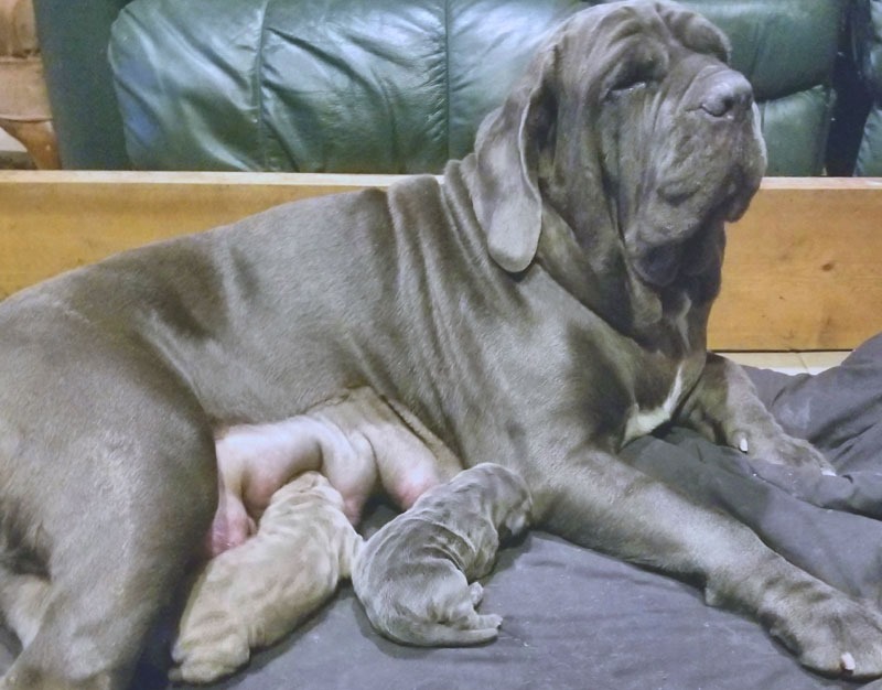 Which is perfect, as our Sheeba had her puppies today (4 days over-due). Blue and tawny babies – who are huge, and taking to life-on-the-outside like naturals.