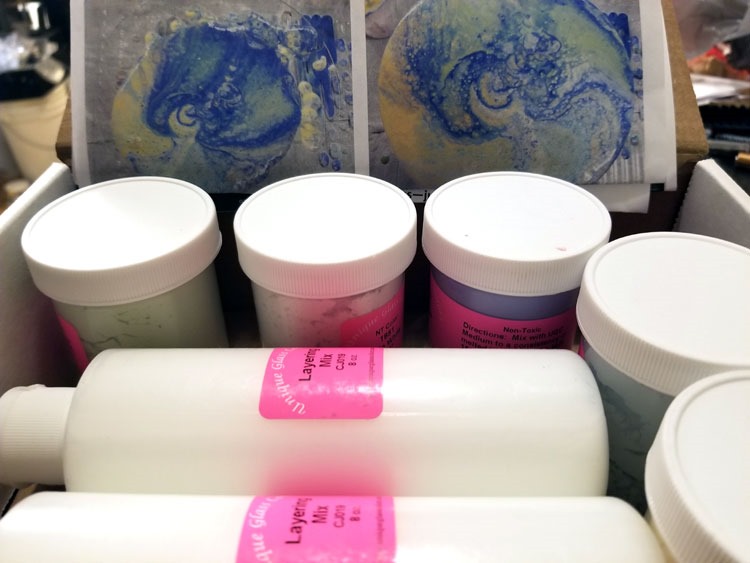 I have lots of things going on in the studio. I received a bunch of silicon molds for F-N-F fun … Along with a few new stencils to play with … And, a ‘dirty pour’ kit from UGC. Time to bust out my kitchen torch …