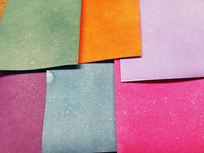 My most recent project was working on inlaid die cuts. I created some custom paper in yummy colors and a misting of glitter/sparkle. Then I die cut those papers to create these hearts. I may have gotten a bit carried away with the number of hearts I made, but … my die cutting, paper-manipulating and sticker-making skills have improved!