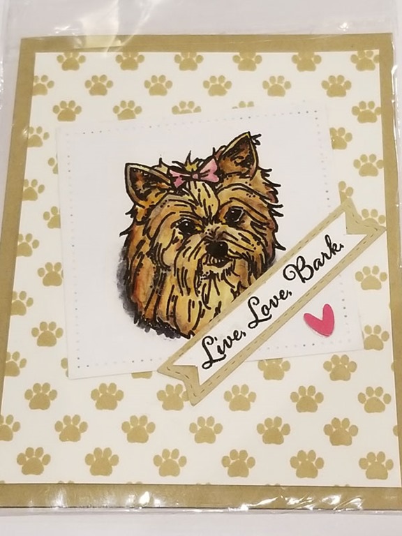 Then I made this CAS (Clean and Simple) card with quick shadow coloring and heavy layer embossing on the white frame. And, I pulled together my Yorkie card. Again a CAS design, which is what I lean to …