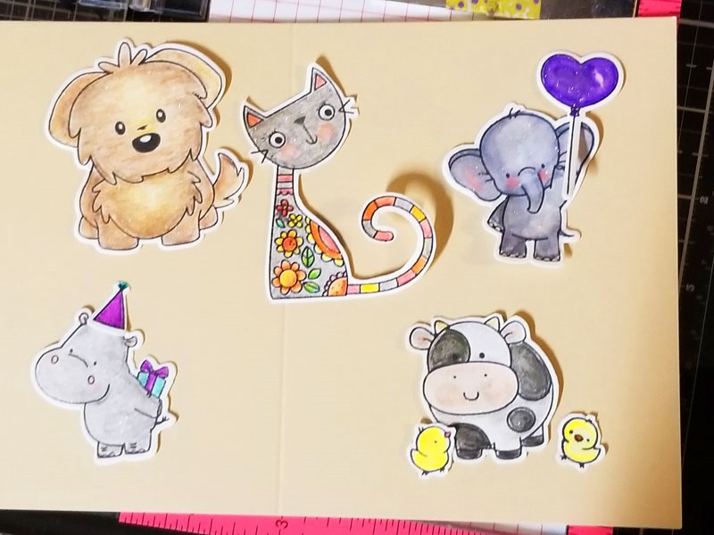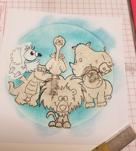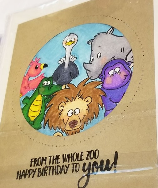 While I’m not thrilled with my distress ink blending skills or the coloring of the zoo-squad, I still consider this a success.