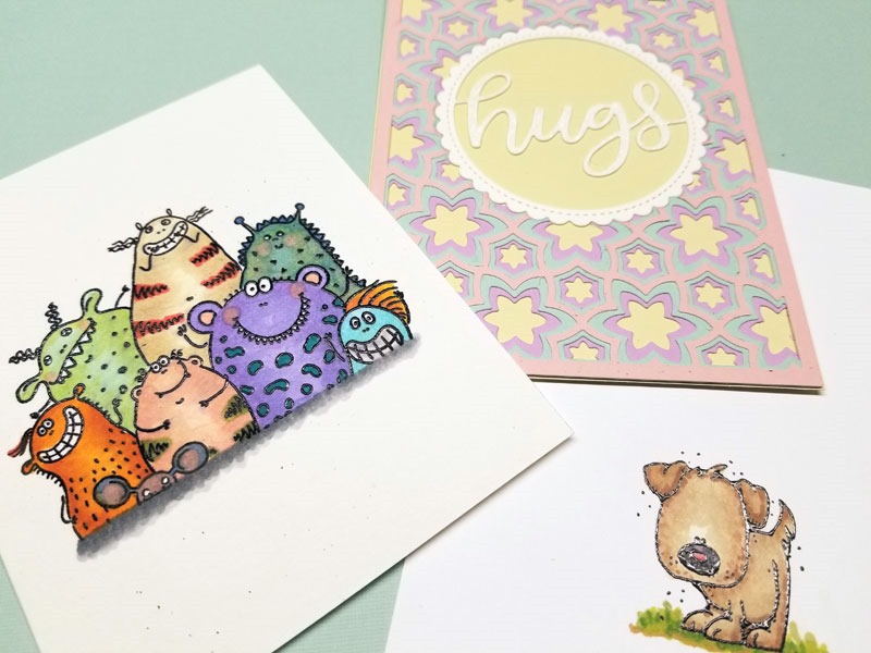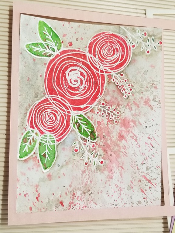 More die cut backgrounds; Copic coloring and die cut cards x2; I love those ranunculus, but not this stamping approach;