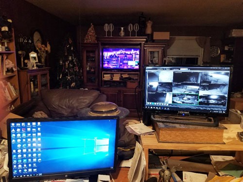 My resident computer tech (ummm, not so much, but DH does try …) took the sickly studio (monitoring) computer to the house to see if he can solve the Microsoft Update illness from last week. In the meantime, we have a work-around. I now have two monitors for this PC, allowing me to keep a watchful eye over Clayton Hill while I’m in the studio. [Baby steps!]![]()