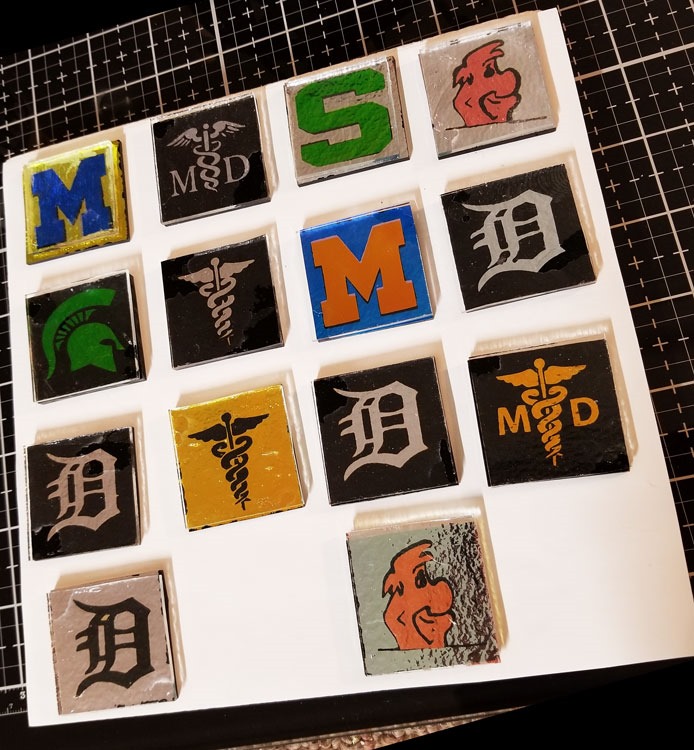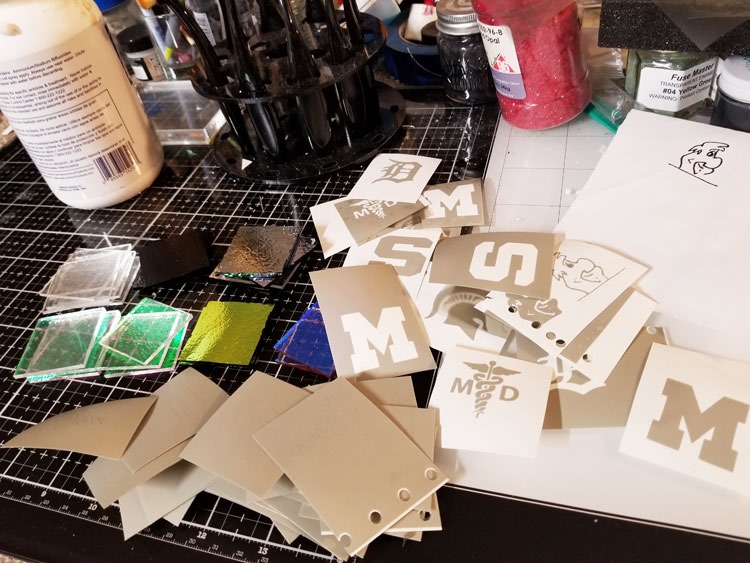But that’s okay … cuz that’s just what I’m doing. I’m completing some orders while back filling some stock with etched dichroic glass (see that Fred – a coworker gave me that too long ago, but I’m glad I waited. I think the two layer dicro is gonna look great, and my plotter, etching and alignment skills are better now -), all cooking in the kiln as I type.