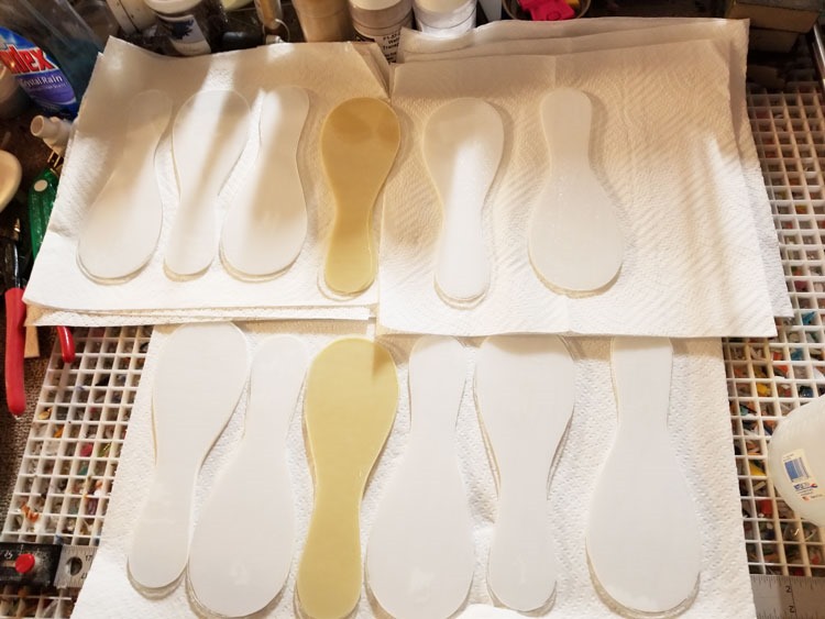 I also have a couple of batches of spoon rest blanks cut/ground and ready to fire. One of the ivory spoons will meet up with some enamel … umm – later today, for another special request. Add a sinter firing, and then back in the kiln to see how our ideas (mine and the customer) mesh … [To be continued]