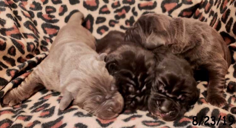 On a more exciting note, our Gina has chimed in to add her pups to our nursery. They were born on 8/15 and are adjusting (and growing) great! Here’s a quick photo of Gina’s boys … awww! You can see more pups (and almost smell the puppy breath