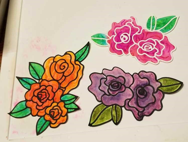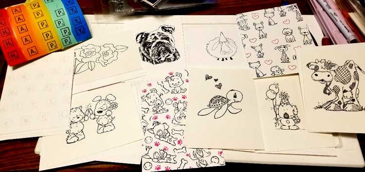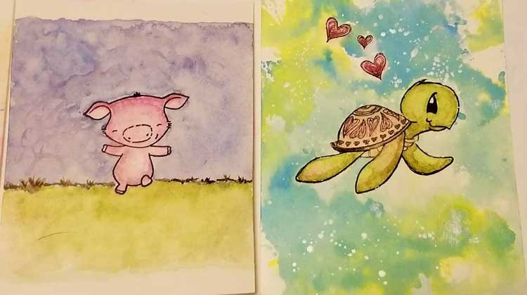 So – I’ve had plenty of time to work on cards – stamping, masking, die-cutting, coloring … And(!) – I organized my growing pan of Daniel Smith watercolors: