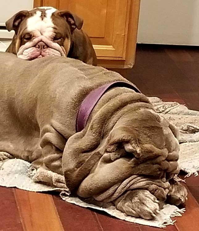 Leaving with a cute photo of Victor and Rotunda (hanging out in the kitchen) – and one of our pups (the girls) … Awww