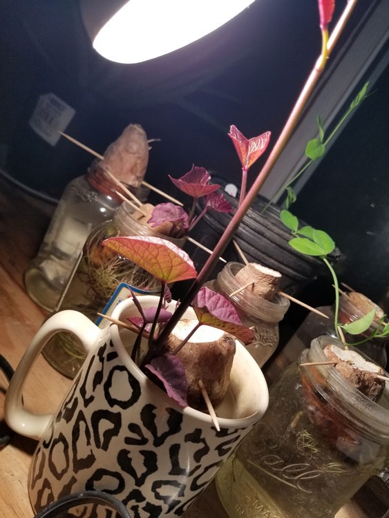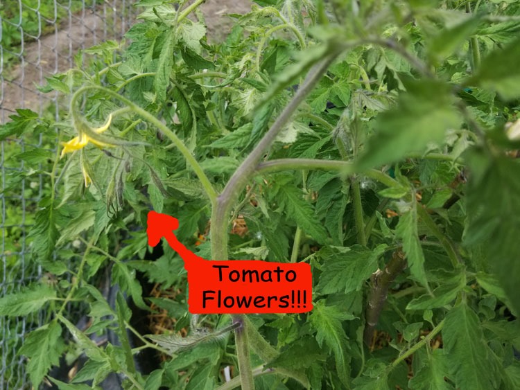 This catch-up game is tough – so many photos. The garden is rocking, and I’m refraining from a full photo tour … (you’re welcome!) But, I do need to share a few photos … My experiments are working (so far, anyway)! My sweet potatoes finally grew some slips, and are now in their own pot (along side the purchased sweet potato plants). And my roma tomato (sliced from organic store bought) plant is flowering! Yay!!!