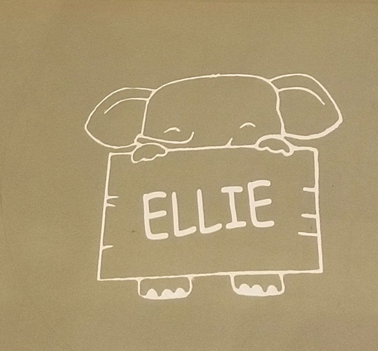 I’m also working on a special ornament … for a friend’s granddaughter first birthday. Here’s the blank in the kiln and here is the design.