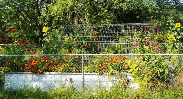My garden is winding down …. We do have a handful of beautiful sunflowers (standing amazingly proud and tall) in their 5 gallon buckets, as DH wouldn’t let me cut any holes in the black mat he so painstakingly installed this spring … We also have the sweet potatoes, some beets, winter squash and the last of the pole beans to collect. And DH and I shivered through our final dip in the pool on Wednesday, before we closed it up for the winter … [Heavy sigh!]