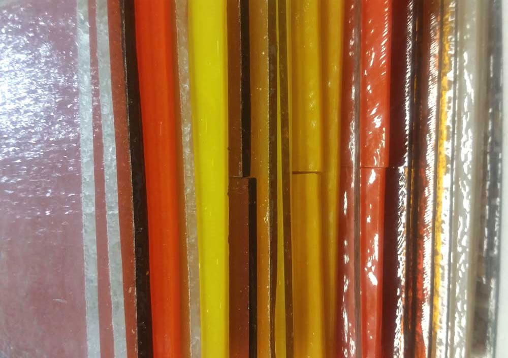 And, we had our vitrigraph pulls – both last Friday and again tonight (date night in my house!). All from previously prepped stacks I had sitting around. The first is Chocolate Caramel (coe90), a light beige covering with cream and dark brown designs inside.