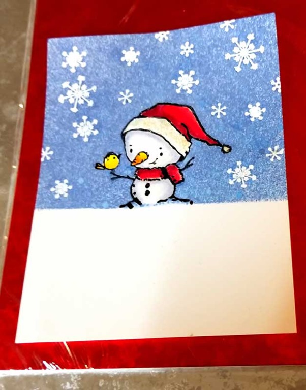 Some other highlights: I made a couple of cute snowmen … a gift tag and a not-yet-finished card top.