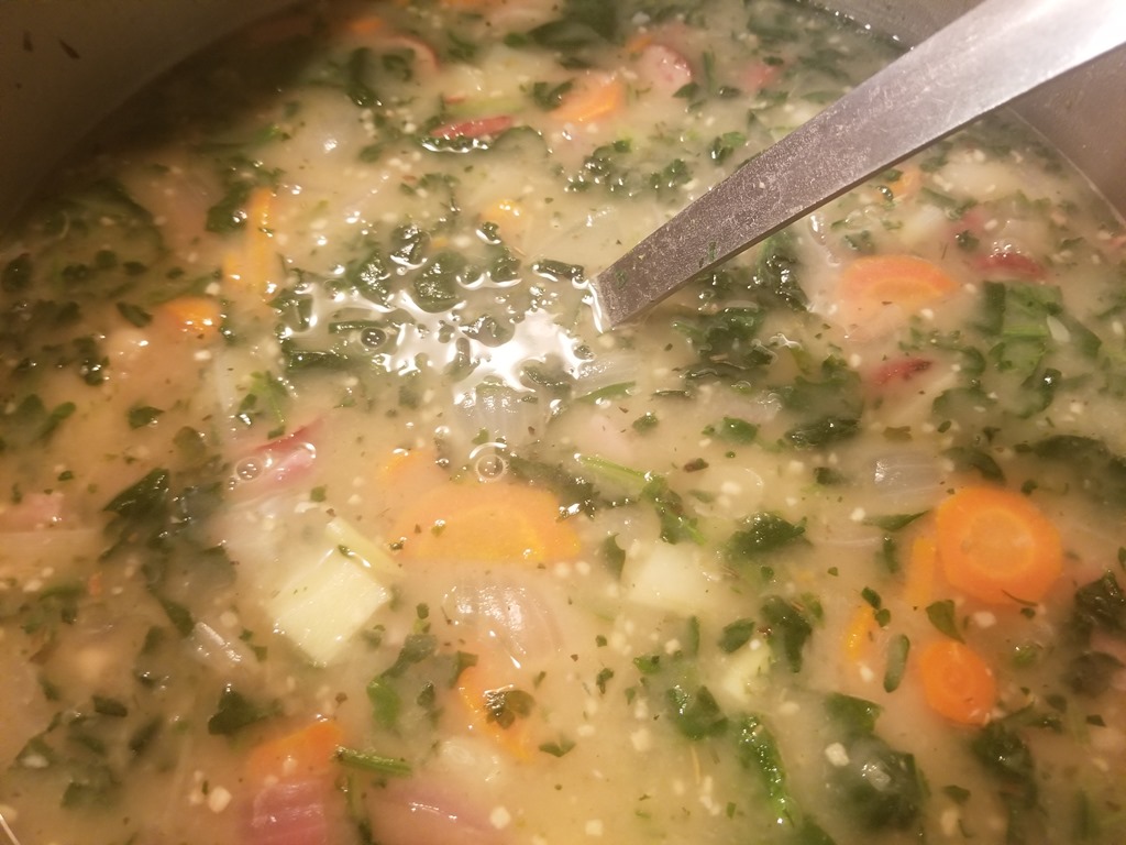 I am creating – in the kitchen and with my yarn … Look at this bean soup, along with a nice ham/cheese/egg casserole to keep someone busy …