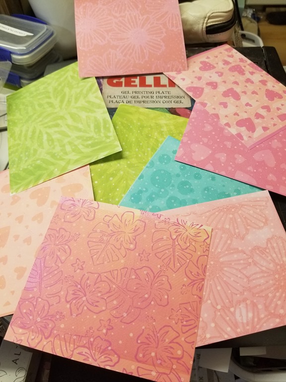 I played a bit with the Gel Press, and inks and stencils … I like what I created, but at the same time, I feel like they look like paper packs … Happy, but … NOT!