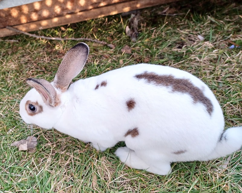 We have bunnies … Meet Babs and Thumper, so cute! They are 3 months old now and acclimating well … We hope to add a male for them soon. Meanwhile, they are adjusting to us – while getting used to daily treats of carrot, spinach, melons, cucumber and alfalfa. I think they might just love me …