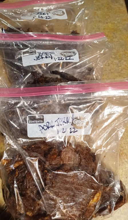 And, we’ve been cooking. I have photos of the jerky we made (pork, beef and chicken), along with the homemade dog treats … The pups love them! Here’s the link to the dog treat recipe. Thanks Alyssa!