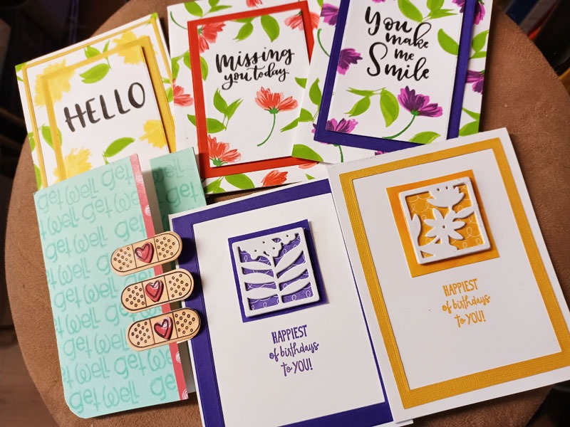 I continue to play with cards as we’re looking at the various farmers markets in our area. Meanwhile, DH is making beautiful pottery (photos to come).
