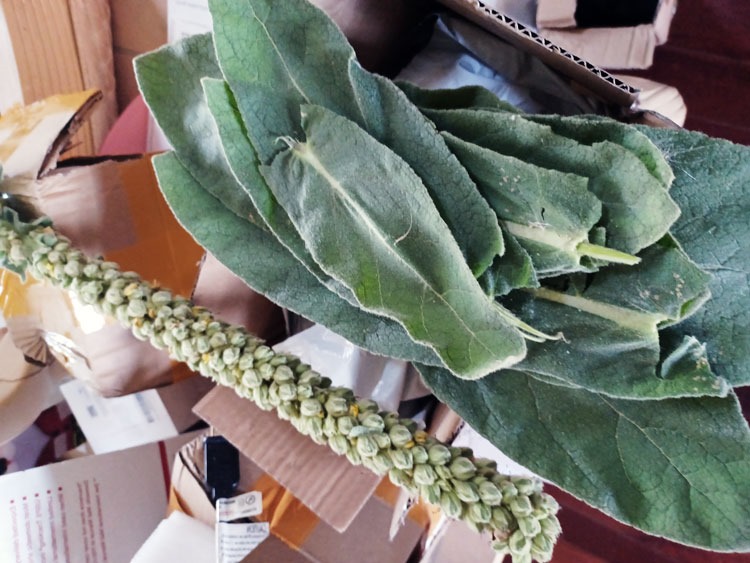 I continue to play with recipes and incorporate yard plants/homeopathic treatments when possible …. So this is mullein, and we made a lovely Mullein Strawberry Ginger tea. DH says he might just like it.
