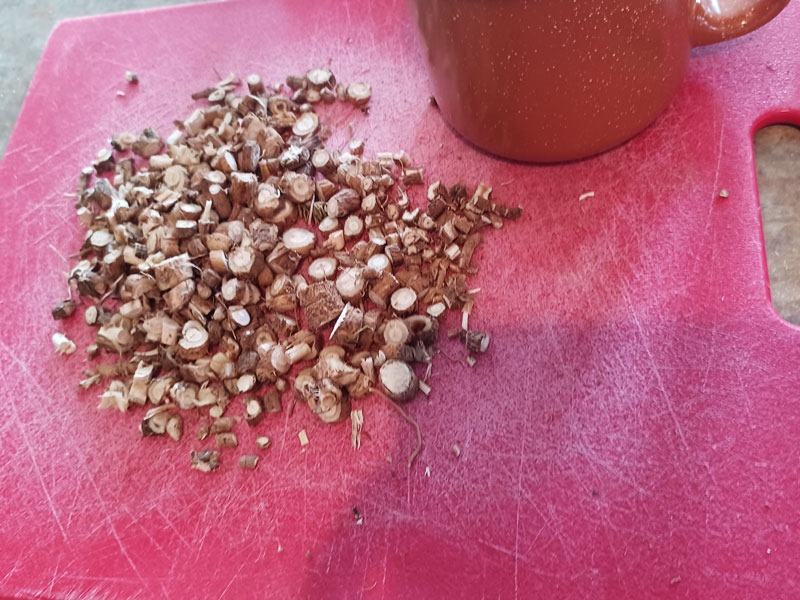 This is chicory … you will find it in almost every non-manicured yard, especially in Michigan. It’s roots are roasted and ground, then added to coffee for a 50/50 decaf drink. We love it … so I’m making it!