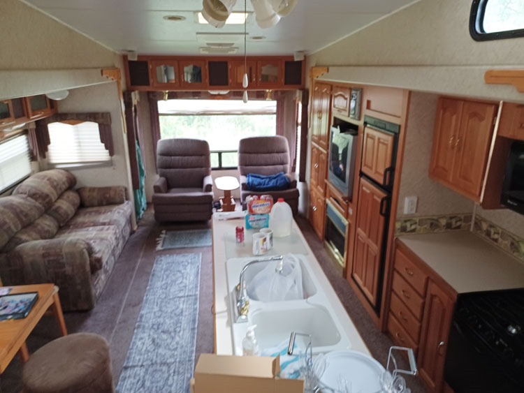 Yep – a 5th wheel camper. It’s beautiful and I love it! Here are a few pictures. We have some plans for this home-on-wheels … but we’ll get into that another day.