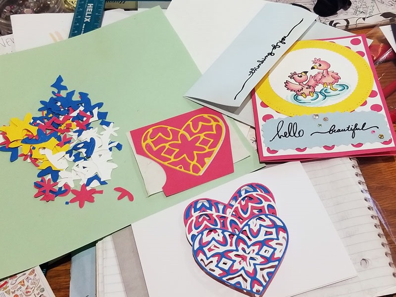 So, feeling unstoppable – I colored another set of fuchsias and decided to have a rematch with my Sizzix Eclips to die cut my designs. And that’s when the meltdown started. I butchered those beautiful flowers. I tried again with 3 more pages of stamped images. My eclips and I did come to an understanding regarding cutting blade depth and speed, but we could not reach mutual agreement, or compromise(!) with registration marks!!! So, we mutilated four sets of stamped fuchsias before I threw up the white flag and accepted defeat. [No pictures of the poor flowers, it’s just too painful!]