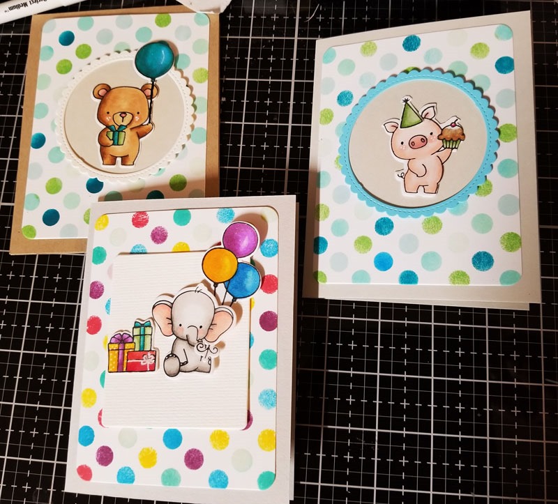 While I’m not thrilled with my distress ink blending skills or the coloring of the zoo-squad, I still consider this a success.