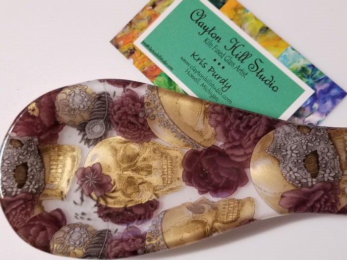 But first, special thanks to JP from Tattered Time and her Garden Stake Whimsy Tutorial. I love using a nib pen for drawing on glass! It is so much easier for me to control my lines (vs using a paint brush) – and her recipe for black enamel is well worth the tutorial price. I haven’t even played with her adorable patterns yet … But, here is my first nib drawing and tonight’s zentangle bulldog (reverse enamel):![]()