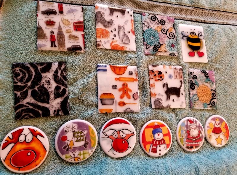 I ran the kilns a few times. Most recently, with these ornaments and night lights: