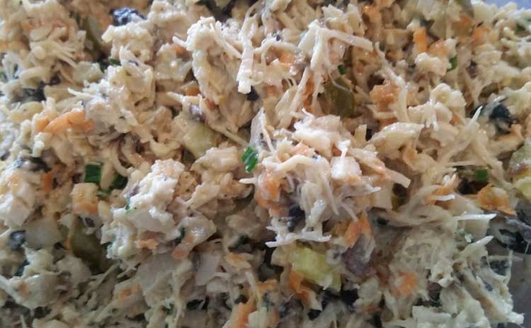 And then we made dinner … an impromptu chicken salad: (shredded chicken, carrots & parmesan cheese, pepper, chives, sautéed mushrooms, diced water chestnuts & pickle, a touch of mayo), on a lightly toasted sandwich. It was good!