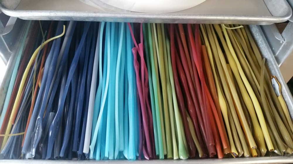 I’ve been tinkering with rearranging/organizing and cleaning the studio. I finally utilized my coe90 sheet storage. As a predominantly coe96 girl, I didn’t realize I had that much … DOH!