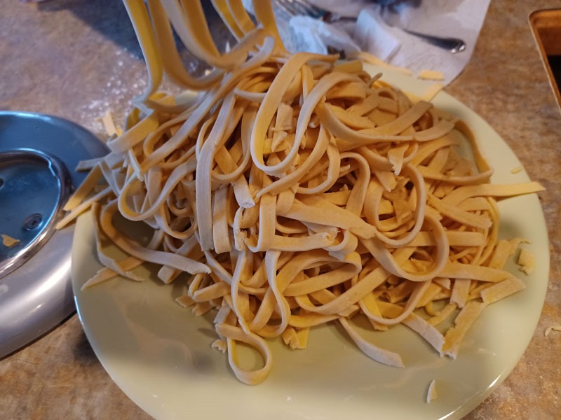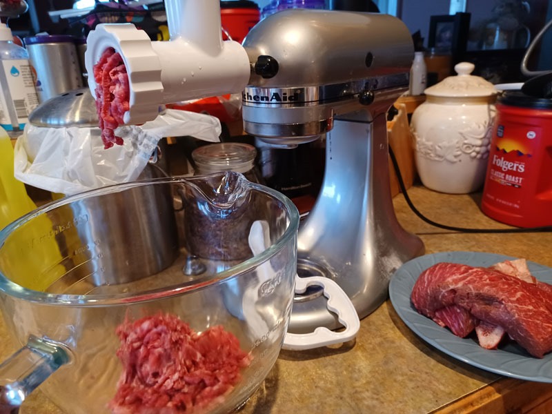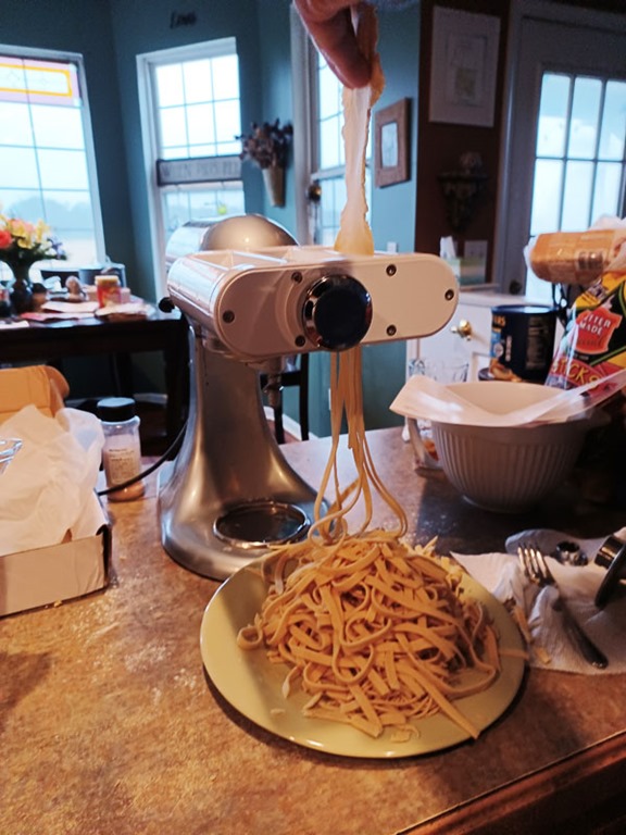 We have eaten well, as I uncovered our Kitchenaid pasta maker and grinder attachments. So we made pasta (with a mushroom/herb sauce – no photo) and then we ground some beef for burgers (I’ll make pretzel buns to go with) …