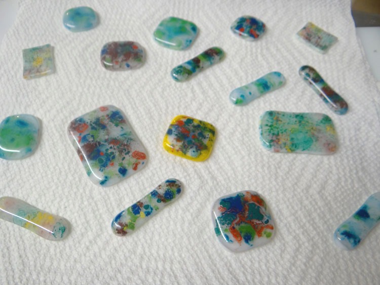 And then – because nothing goes to waste in the studio … Enamel + CMC + glass … equals BUBBLES!!! (Well, WTH …)