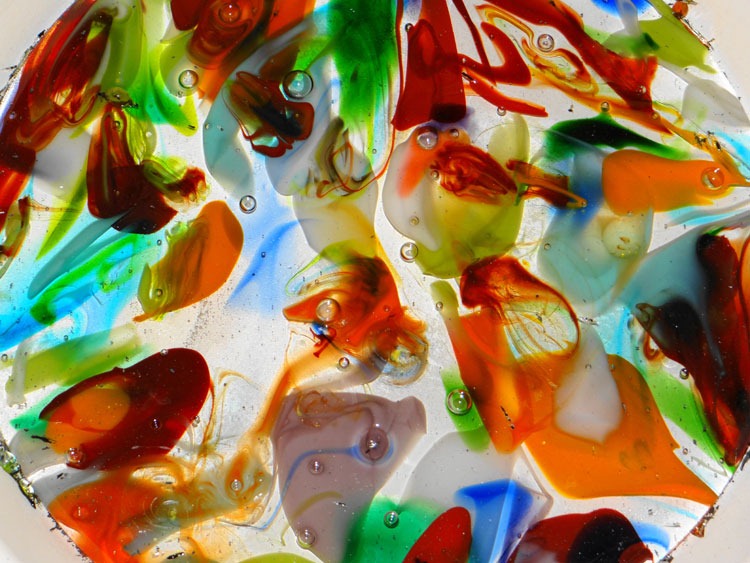 Now, locked in my studio … I am determined to work through the mood-funk. This means Adele is blasting on the stereo, my most inspiring photo slide show (art/project ideas) is playing on the screen and I putter and play with glass.