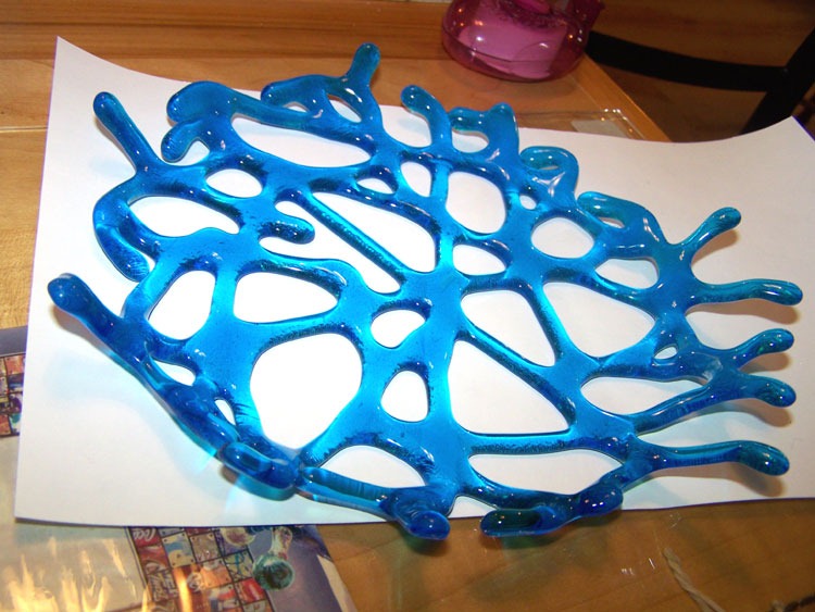 And – DH is making progress on his ‘Pool’ stained glass window. During my non-studio down time, I’ve started knitting a bag that I will felt once complete. Here’s the progress so far: