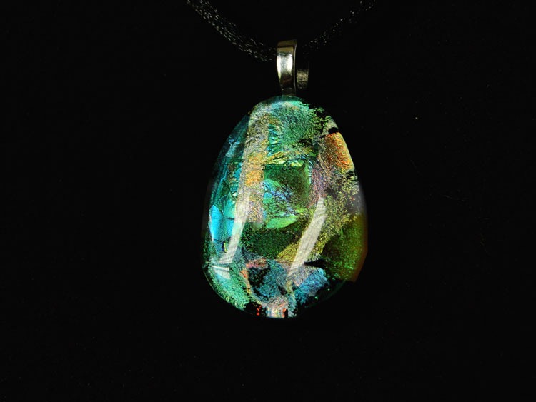 And I continue with the dichro cabs for my next batch of dichroic badge reels. My large dichro experiment – yeah, not so great. But here’s a picture. I think I’m done ‘playing’ with it, and I’ll just put clock parts on it and call it my studio clock …