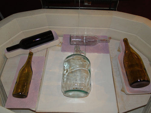 The large blue blank is slumping in the coffin, along with a couple of wine bottles that needed texturing and the blue/yellow spoon rest. The studio will be warm tonight!