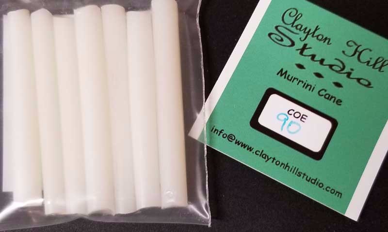 This white murrini/murrine is beautiful! Hand pulled using shades of vanilla, warm white, white and clear Bullseye glass. It’s perfect for your next fused glass or mosaic art piece. One-of-a-kind. We pulled two separate ‘batches’ of cane with these colors – one with delicate, floral shapes and one with geometric, concentric circles. Hand made in our studio, this is cane that we use in our own projects. Price is per ounce. Sold in 2″ stalks. 7 stalks per package. Each package includes a mixture of cane from both pull designs. Diameters range from 3mm to 10mm. Shipping insurance and tracking included. Shipping within US only.
